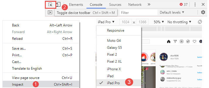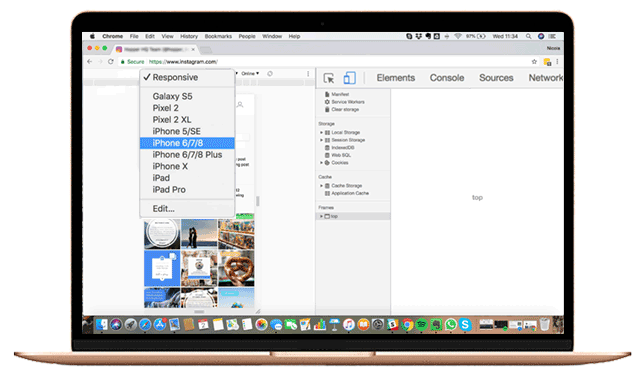 Nigh of the steps are the same equally bulk posting Instagram pictures from Windows PC. Y'all need to discover the developer tool, followed by changing the viewer console from calculator to mobile phone. You lot tin can also use scheduling tools, plug-ins, and simulating tools introduced in the above tutorials. Let's see how to upload pictures to Instagram through Chrome on macOS.